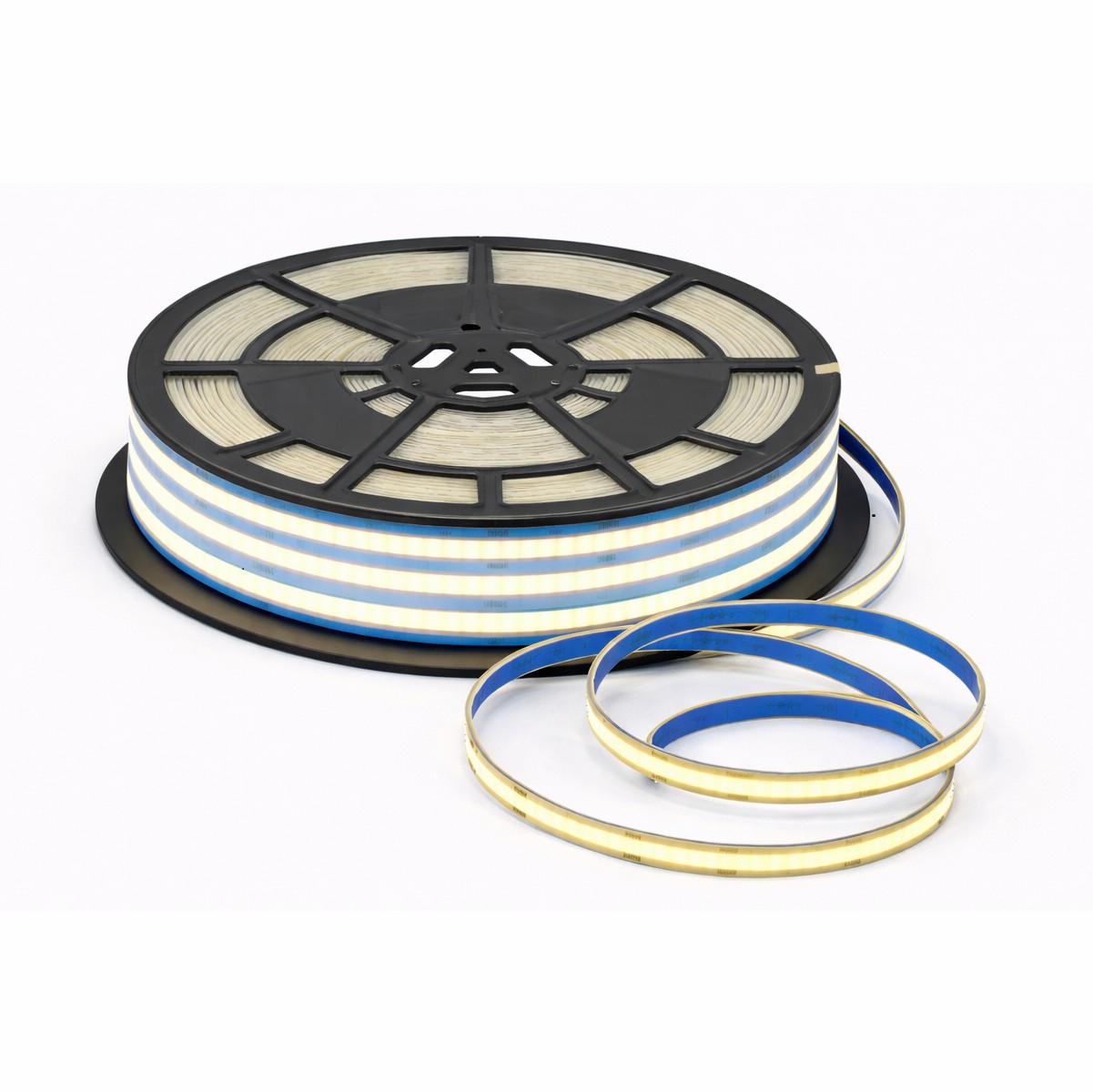 Taśma LED COB 12V 320 LED/m to nowoczesny pasek świetlny zapewniający idealnie jednolitą linię światła bez widocznych punktów LED. Zastosowana technologia COB eliminuje efekt pojedynczych diod, dzięki czemu nie ma potrzeby stosowania profilu z mlecznym kloszem. Taśma emituje neutralną barwę światła 4000K, idealną do codziennego użytkowania. Jest elastyczna i doskonale sprawdzi się zarówno w domowych, jak i komercyjnych instalacjach oświetleniowych, oferując estetyczne i nowoczesne wykończenie wnętrza. Taśma sprzedawana jest na metry bieżące, a zamówiona ilość zostanie docięta z, fabrycznej rolki o długości 50 m. Do podłączenia wymagany jest zasilacz (do dokupienia osobno).Maksymalna długość jednego odcinka wynosi 5 m przy zasilaniu z jednej strony lub 10 m przy zasilaniu z dwóch stron.