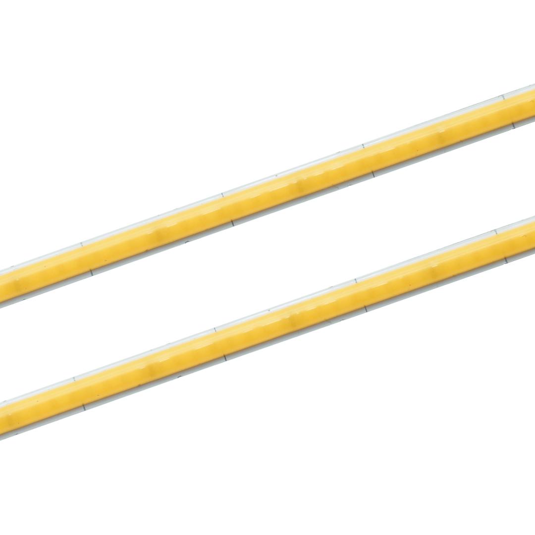 Taśma LED COB 12V biała dzienna w wersji Slim o szerokości jedynie 5 mm i z sekcją cięcia co 1 cm. Taśma LED o mocy 11W/m emitująca w pełni jednolite światło w temperaturze 3000K.