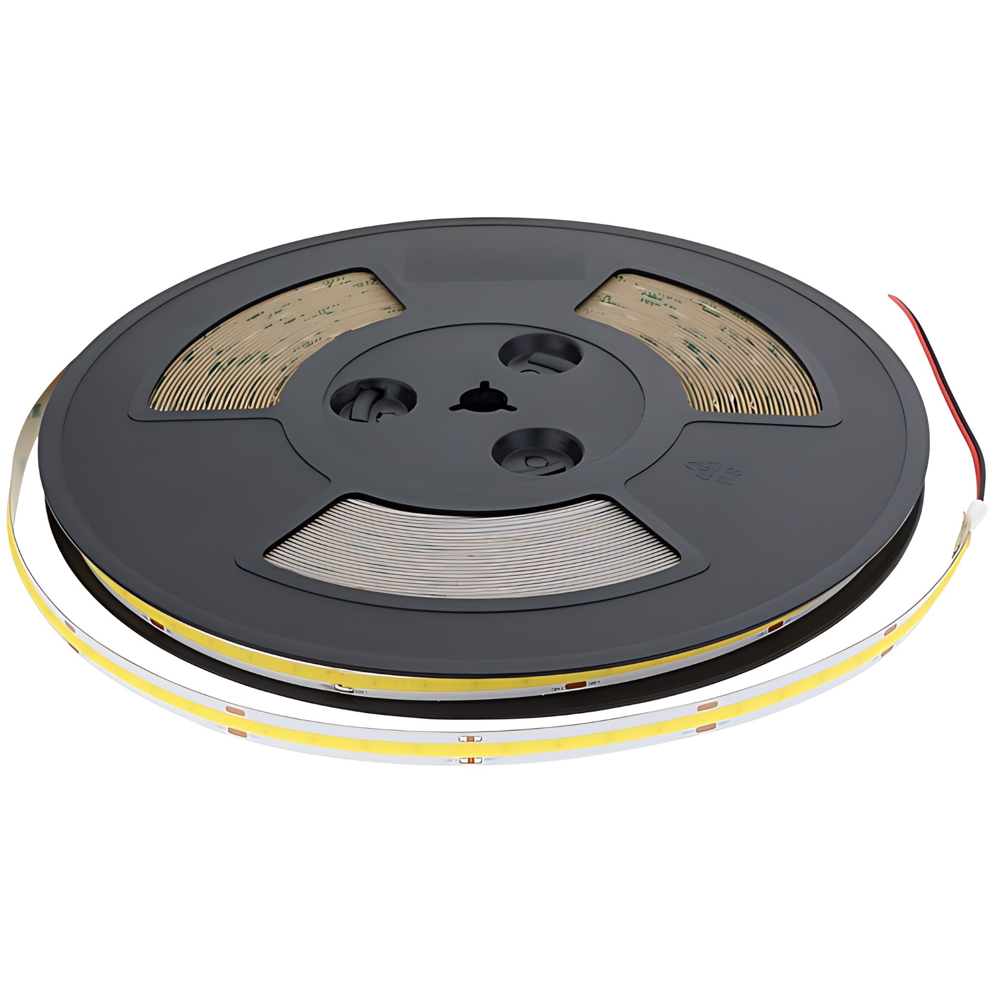 Taśma LED COB 48V o mocy 8W/m i białej zimnej barwie światła. Profesjonalna taśma LED COB wyposażona w 480 LED/m, zapewniająca w pełni jednolitą linię światła. Współczynnik oddawania barw CRI>90Ra.