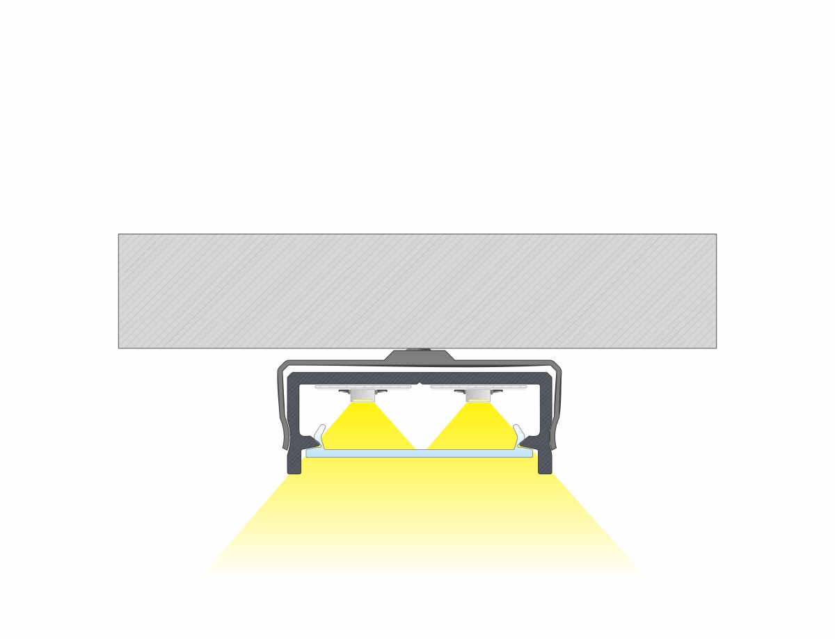 Efekt końcowy montażu profilu DUAL z kloszem DOUBLE z uchwytem montażowym DUAL.