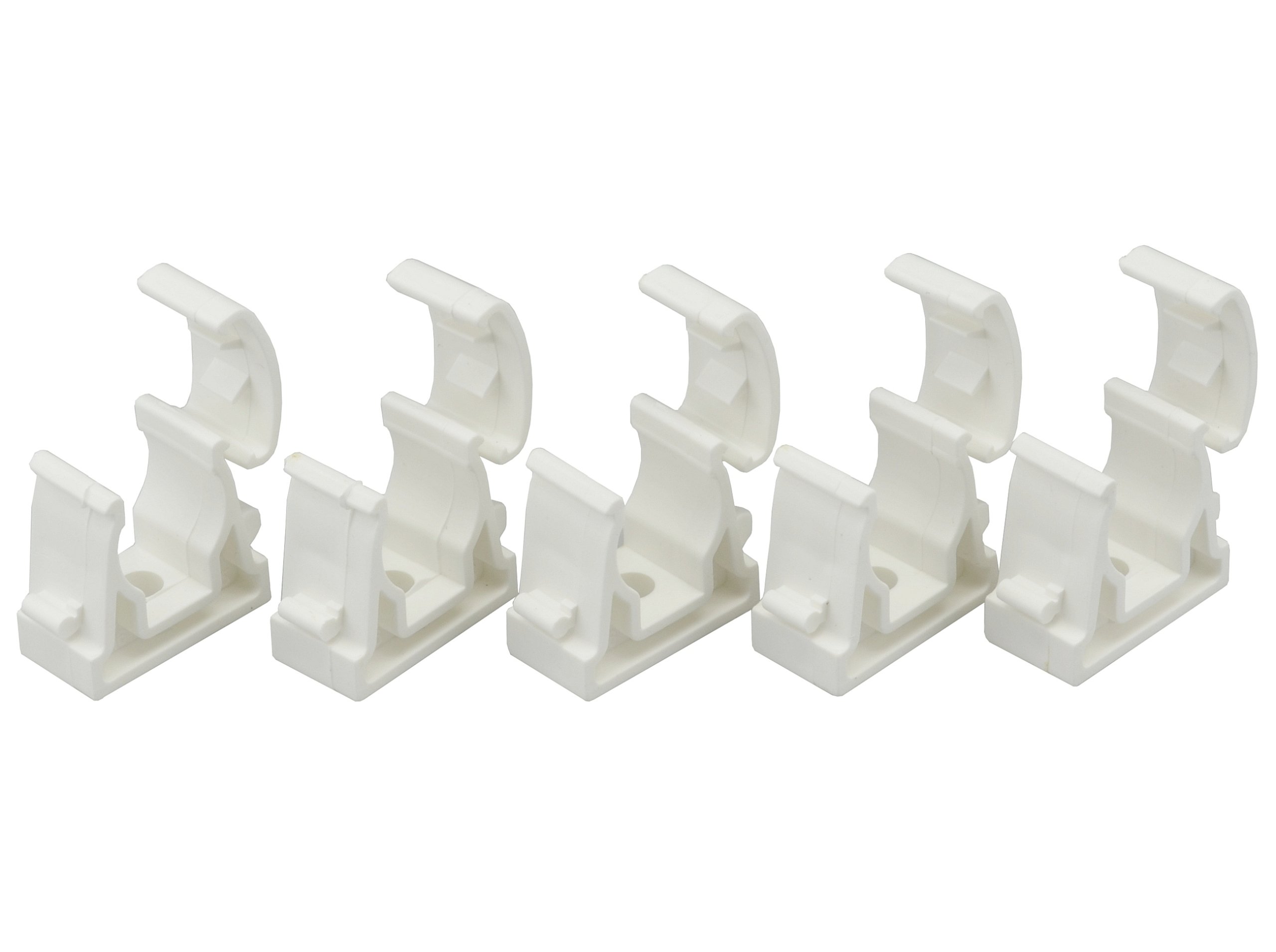 Uchwyt zamykany UZ-32 do rur RL-32 i peszla – zestaw 5 sztuk. Uchwyt do rur elektroinstalacyjnych w kolorze białym służy do mocowania rur ochronnych RLm.