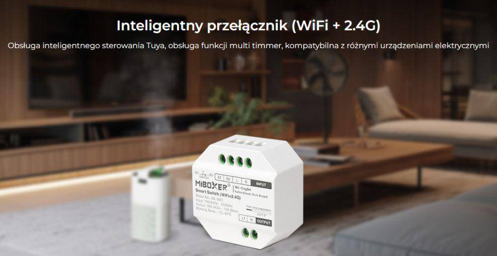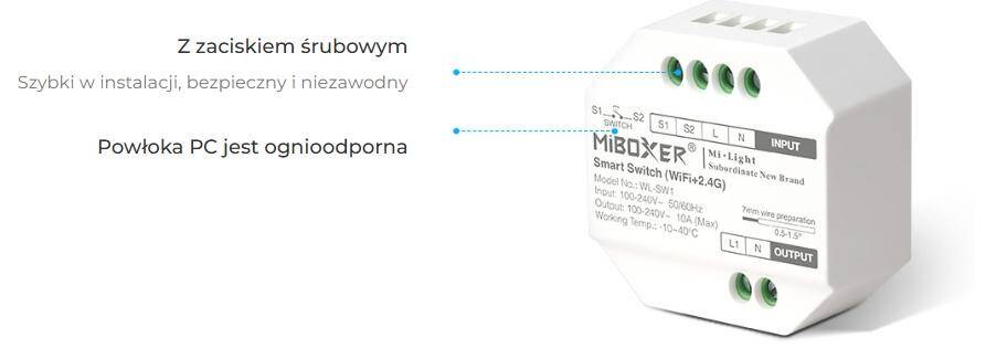 WL-SW1 umożliwia zdalne włączanie i wyłączanie oświetlenia 230V, a dzięki komunikacji Wi-Fi + 2,4 GHz może pracować zarówno jako element inteligentnego domu, jak i część bezprzewodowego systemu sterowania Mi-Light / MiBoxer. To praktyczne rozwiązanie do mieszkań, biur, lokali usługowych, hoteli i innych przestrzeni, w których liczy się wygodna obsługa światła oraz możliwość rozbudowy instalacji o funkcje smart home.