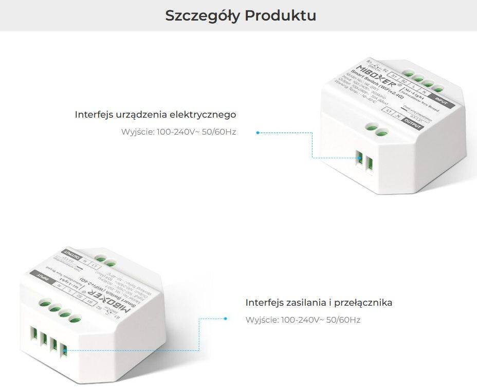 • Typ urządzenia: inteligentny przełącznik Wi-Fi dopuszkowy
