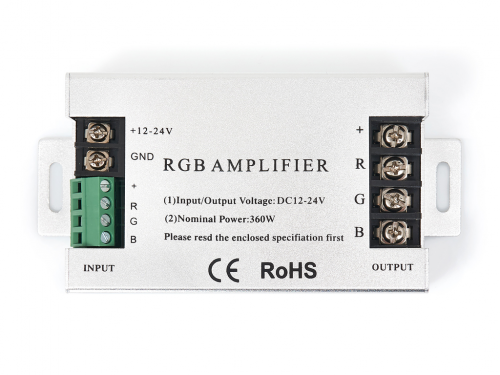 Wzmacniacz sygnału 30A 360W przeznaczony do taśm LED 12V i 24V. Współpracuje z 4-kanałowymi taśmami LED, które emitują jedną z barw palety RGB. Wykorzystując wzmacniacz sygnału RGB sprawisz, że Twoja taśma LED będzie świecić w pełni jednolicie, nawet przy dłuższych odcinkach.