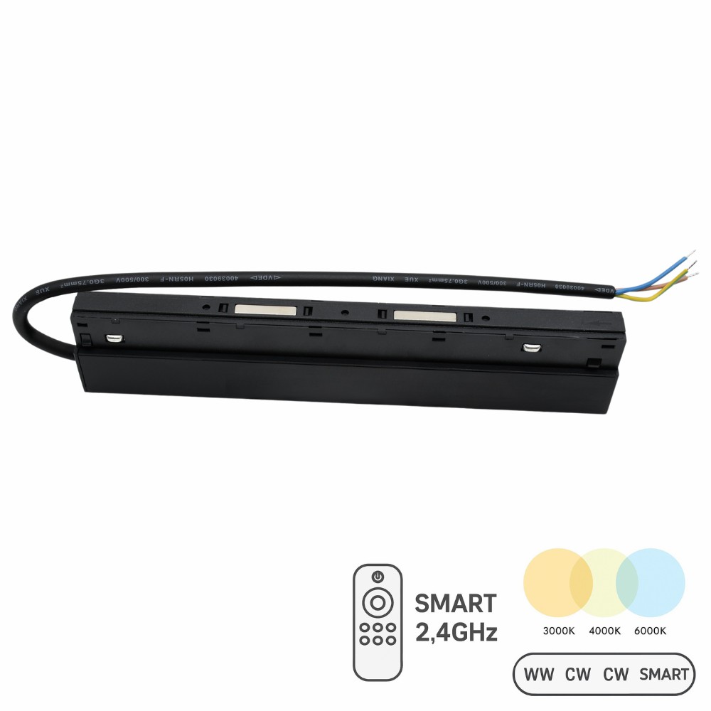 Szynoprzewód magnetyczny pozwala na bardzo łatwy i szybki montaż opraw na całej długości listwy. Lampy oferowane w LED Expert wyposażone są w adaptery z magnesami, które łączą się ze specjalnymi stalowymi płaskownikami w szynach. Taka konstrukcja sprawia, że do montażu lamp nie są potrzebne żadne narzędzia, a wystarczy tylko umieścić je w szynie, która natychmiast połączy się z magnesem w oprawie. W przypadku lamp Switch CCT przed zamontowaniem możesz wykorzystać przełącznik (znajdujący się na mocowaniu oprawy), który pozwoli Ci na zmianę barwy światła (3000K/4000K/6000K) lub przejście w tryb SMART (obsługa za pomocą pilota).