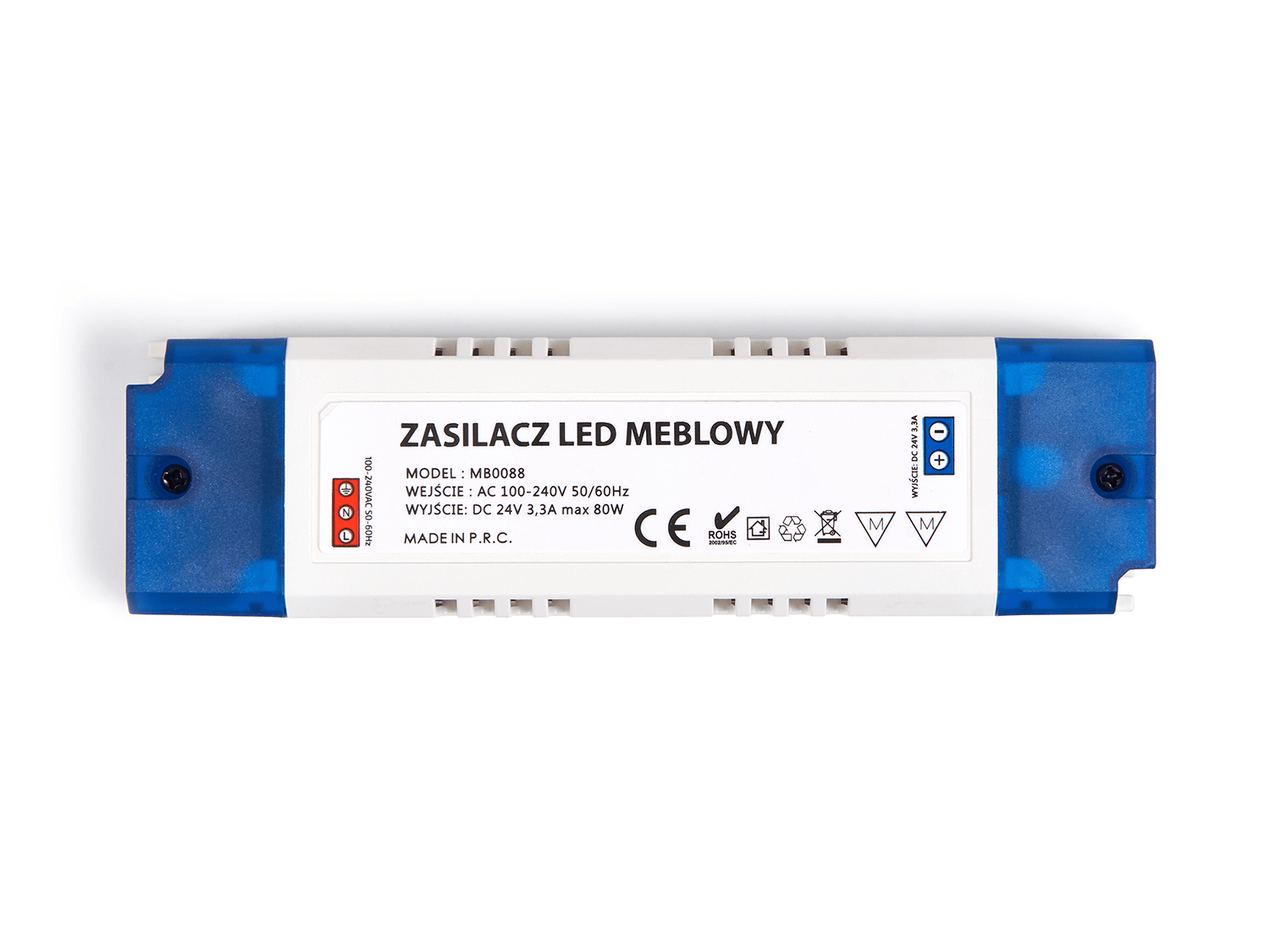 Zasilacz meblowy LED 24V o mocy 80W, przeznaczony do pracy z nowoczesnym oświetleniem LED. Zasilacz o kompaktowych wymiarach, łatwy w podłączeniu i instalacji.