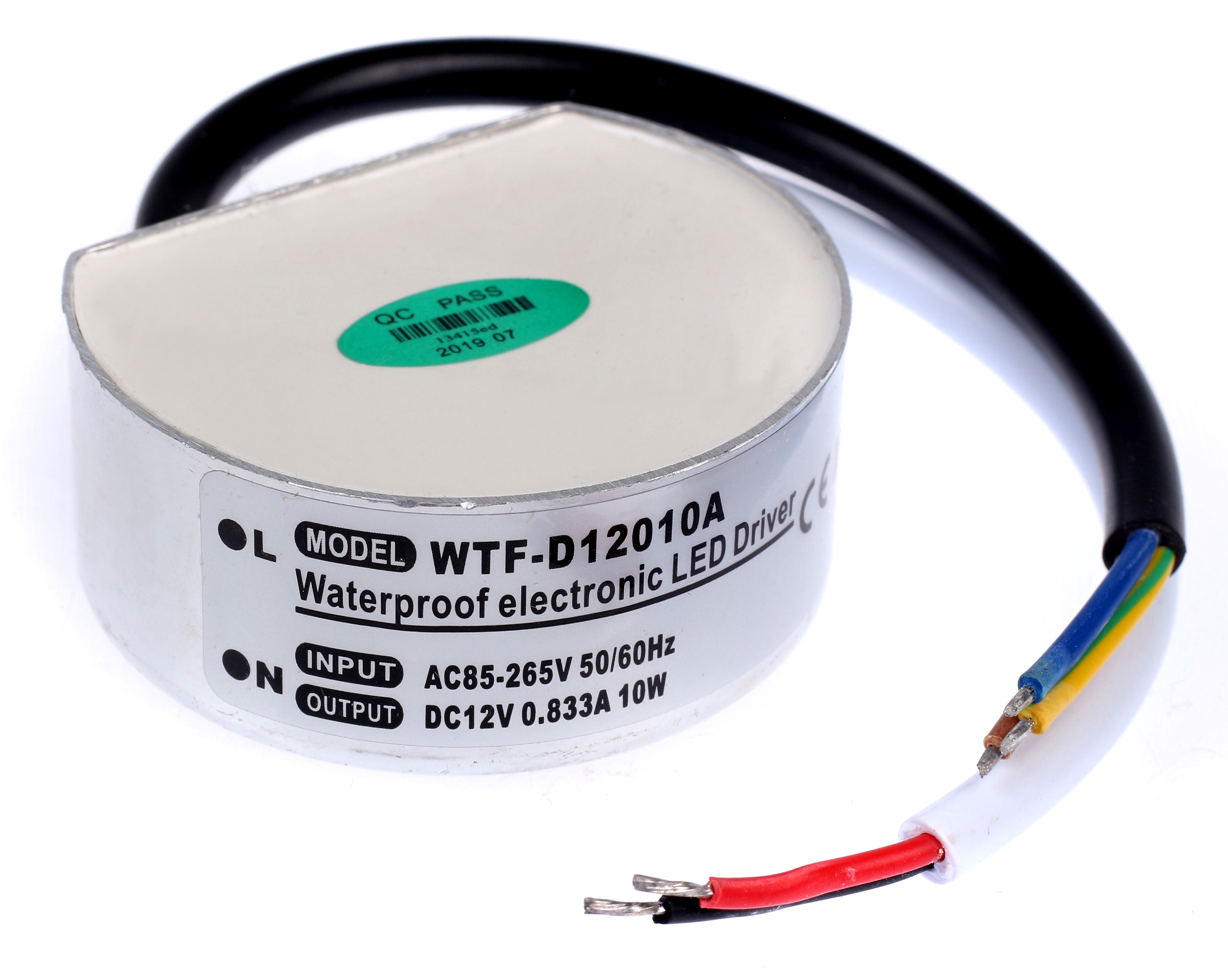 Zasilacz LED do puszki IP67 12V o mocy 10W i szerokim zakresie napięcia wejściowego. Zasilacz przeznaczony do oświetlenia i innych urządzeń elektronicznych zasilanych prądem o stałym napięciu 12V.