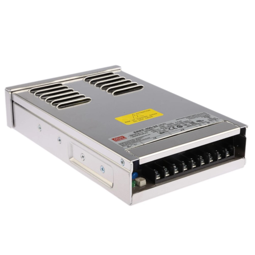 Zasilacz modułowy Mean Well to produkt najwyższej jakości, ceniący się uznaniem na rynku i znany ze swojej długiej i bezawaryjnej pracy. Mean Well to uznana marka ciesząca się ogromną popularnością, a ich produkty są cenione za jakość wykonania i trwałość. Oferujemy Państwu zasilacz Mean Well ERPF-400-24 o mocy 400W i napięciu wyjściowym DC 24V. Jest to komponent stałonapięciowy, przeznaczony do zasilania urządzeń elektronicznych wymagających prądu o stałym napięciu. Podłączymy do niego wszystkie produkty wykonane w technologii LED, które wymagają prądu wejściowego o stałym napięciu 24V DC, czyli asortyment taki jak taśmy i moduły LED, czy neony Ledowe.