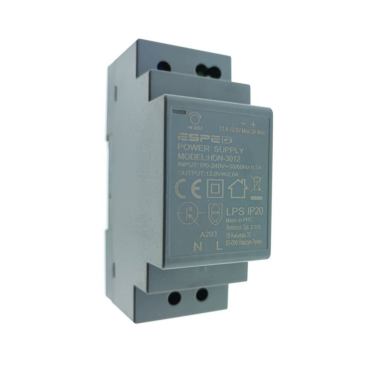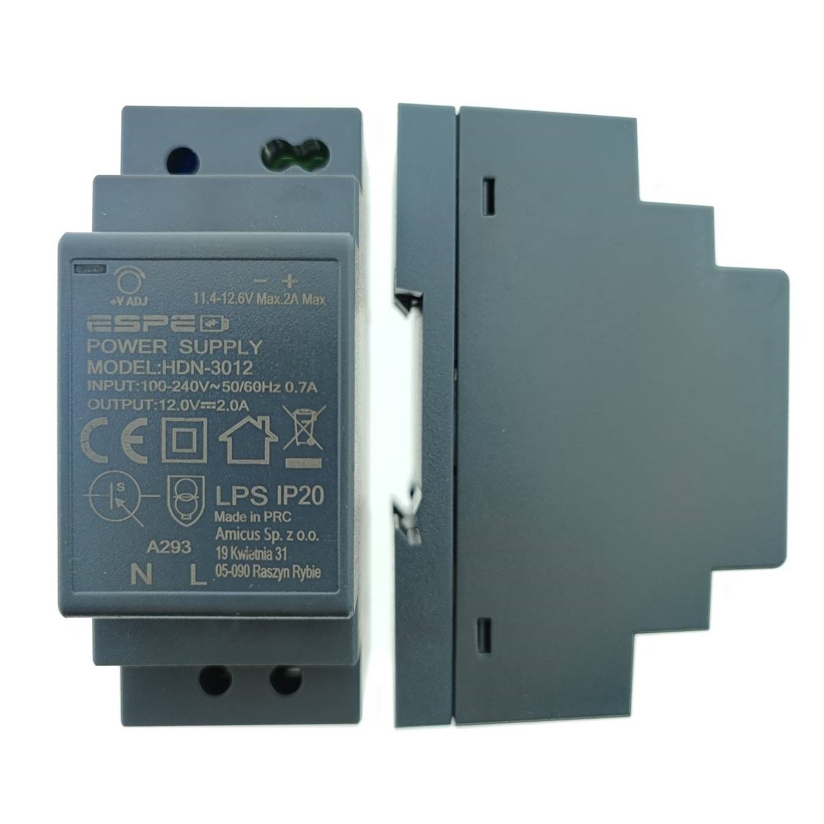 Zasilacz na szynę DIN 12V HDN PRO o mocy 24W przeznaczony do montażu w szynie DIN TS35. Profesjonalny zasilacz przeznaczony do pracy z oświetleniem oraz automatyką przemysłową i budowlaną.