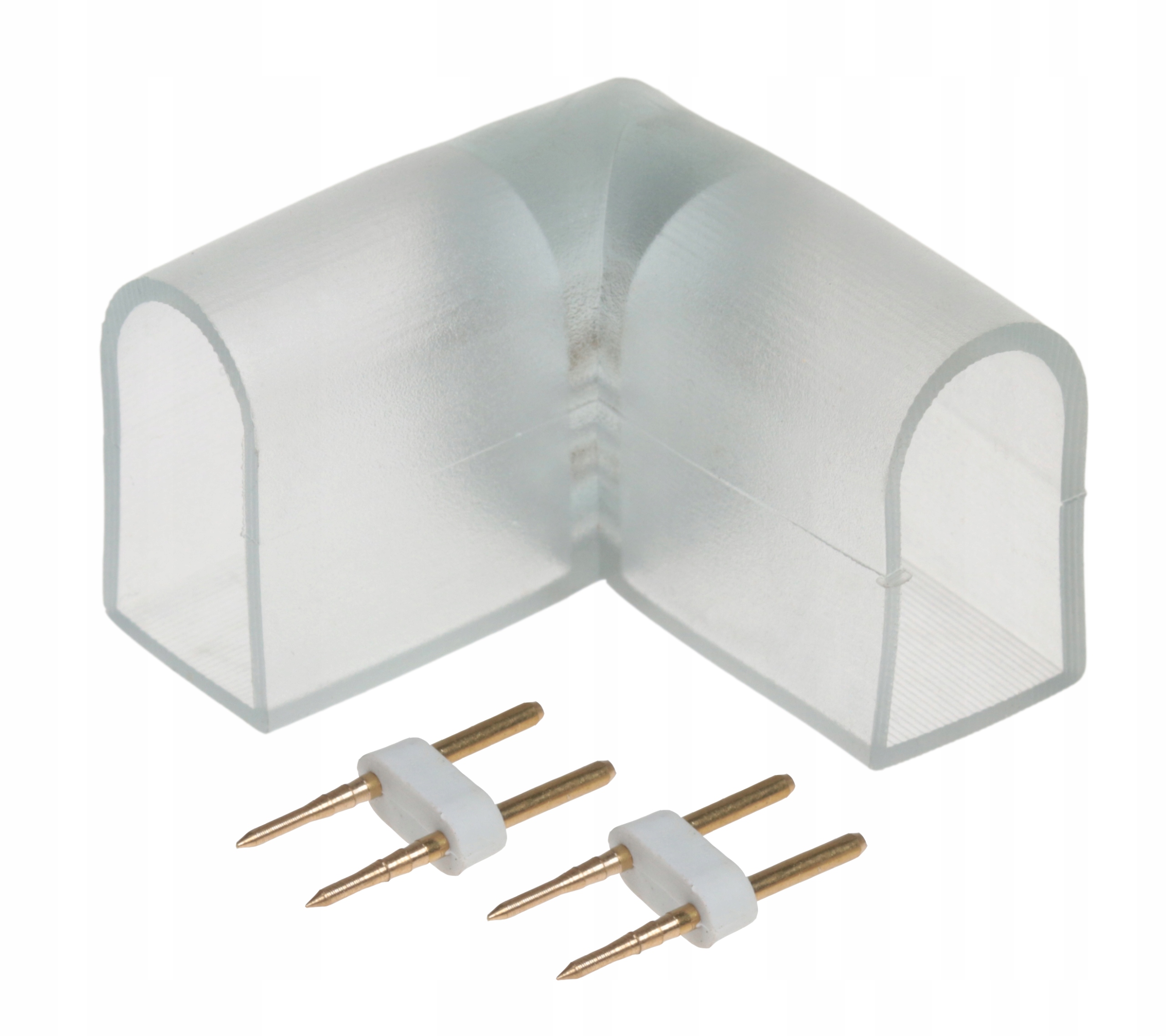 Złączka kątowa 90 stopni do neonów LED 15×25 z konektorami w zestawie. Złączka przeznaczona do połączenia dwóch neonów LED.