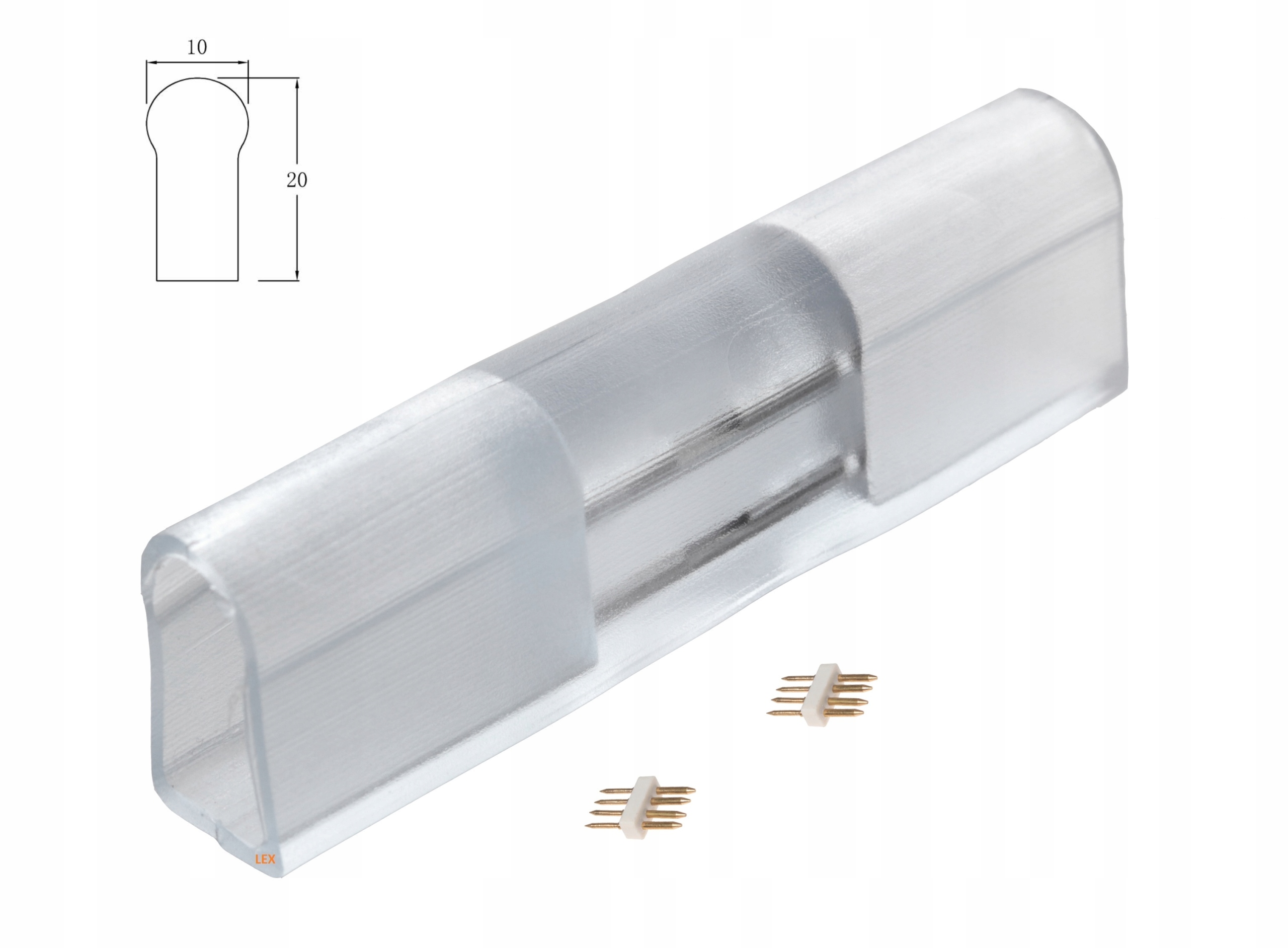Złączka prosta do neonów LED 10×20 RGB z konektorami w zestawie. Złączka przeznaczona do połączenia dwóch neonów LED.