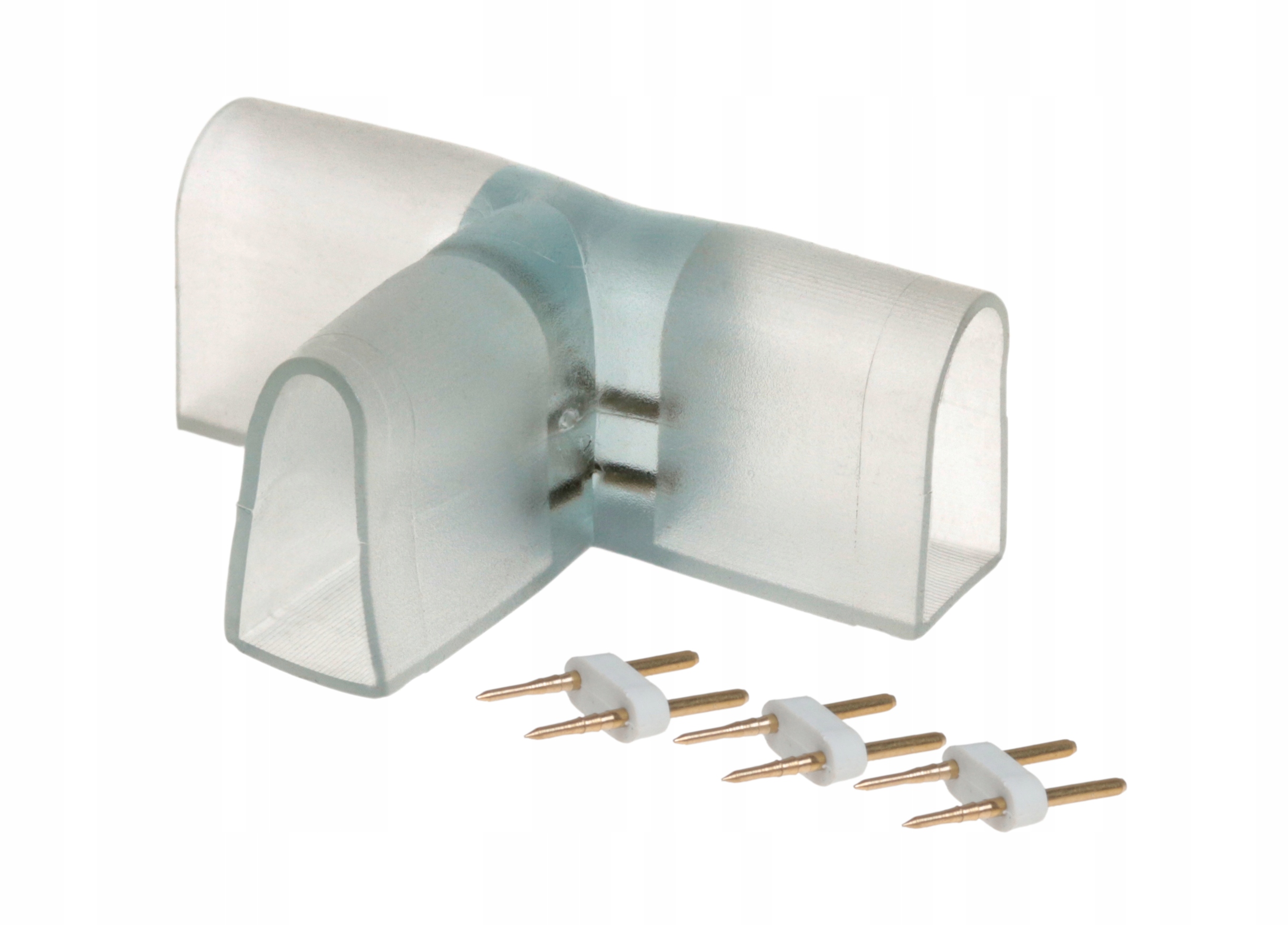 Złączka potrójna do neonów LED 15×25 z konektorami w zestawie. Złączka przeznaczona do połączenia trzech neonów LED.