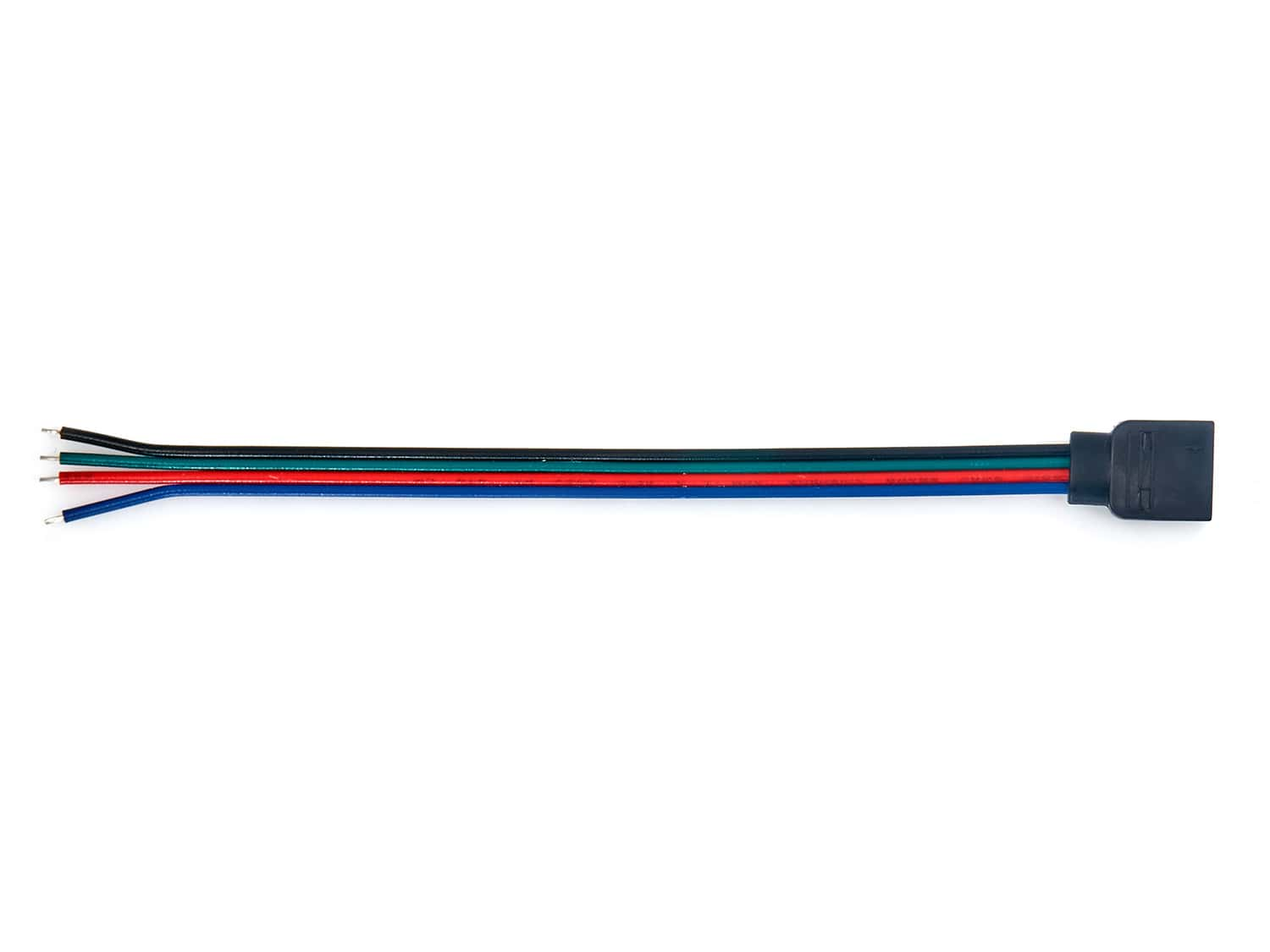 Złączka z przewodem przeznaczona do wielokolorowych taśm LED RGB o szerokości 10 mm. Złączka z jednej strony wyposażona w gniazdo 4 pin typu drabinka, natomiast z drugiej w 4-żyłowy umożliwiający szybkie podłączenie sterownika. Szybkozłączka zatrzaskowa z drabinką do taśm LED pozwala na szybkie łączenie taśmy LED o szerokości 10 mm z kontrolerem bez potrzeby lutowania. Wystarczy jedynie w gniazdo 4-pin typu drabinka wcisnać sterownik, bądź następną rolkę taśmy LED. Złączki bardzo łatwo montuje się, oraz bez większego trudu można je zdjąć, przez co są to akcesoria wielokrotnego użytku. Złączkę można wykorzystać do zwykłej taśmy LED, a także wodoodpornej, jednak w tym przypadku należy wcześniej usunąć jej silikonową osłonę w miejscu łączenia.