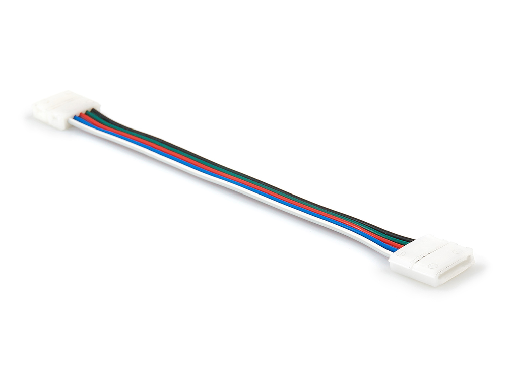 Złączka dwustronna z przewodem przeznaczona do wielokolorowych taśm LED RGBW o szerokości 12 mm. Złączka umożliwia szybkie podłączenie taśmy LED z drugą taśmą, bez potrzeby lutowania