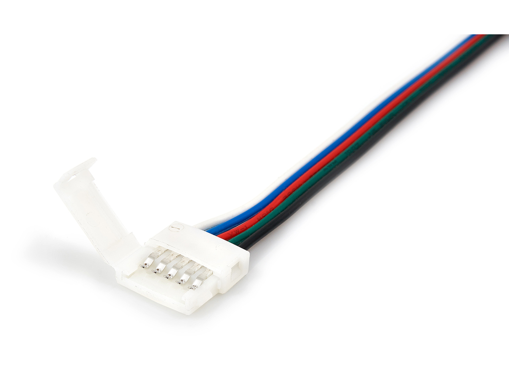 Złączka jednostronna z przewodem przeznaczona do wielokolorowych taśm LED RGBW o szerokości 12 mm. Złączka umożliwia szybkie podłączenie taśmy LED z kontrolerem.