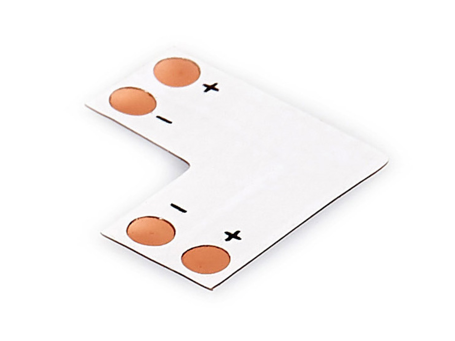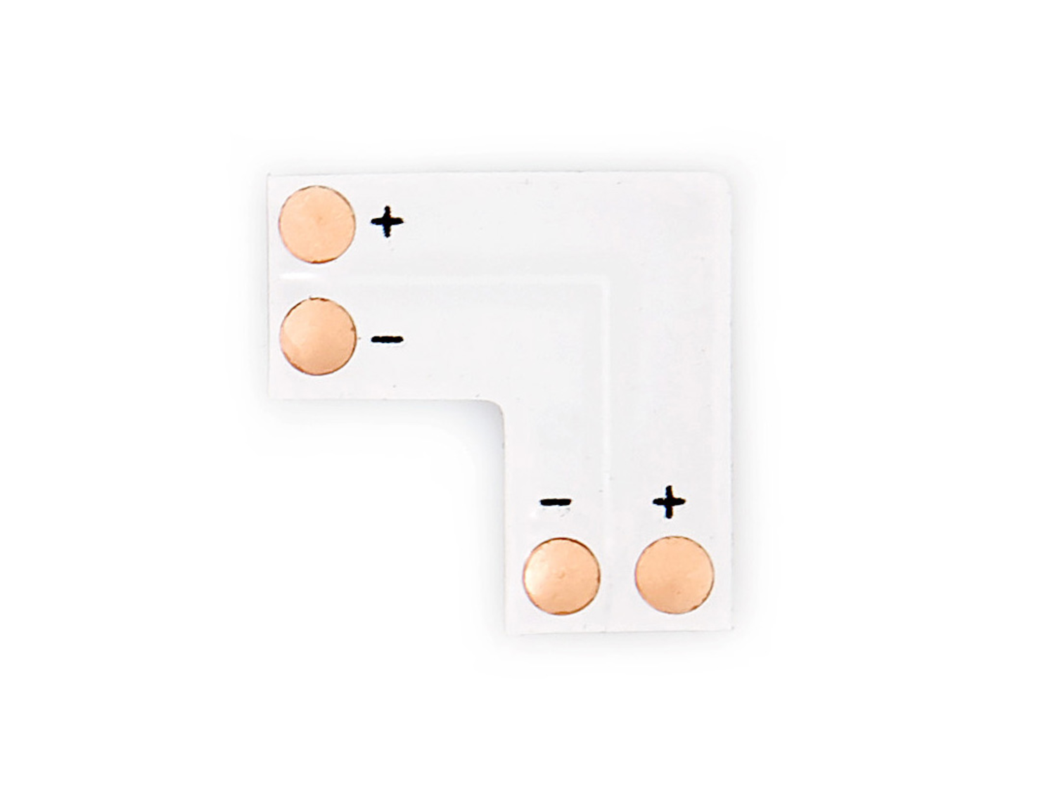 Złączka kątowa typ L przeznaczona do jednokolorowych taśm LED SMD2835/3528 o szerokości 8 mm. Złączka kątowa z obu stron posiada miedziane ścieżki, które pozwolą nam na szybkie przylutowanie taśm LED. Złączka kątowa do taśm LED pozwoli nam na bezpieczne i trwałe połączenie dwóch odcinków LED pod kątem 90 stopni. Złączka dostępna w naszej ofercie przeznaczona jest do taśm LED o szerokości 8 mm, czyli najczęściej wybieranych pasków LED z diodami SMD 2835 i SMD 3528. Złączkę można wykorzystać do zwykłej taśmy LED, a także wodoodpornej, jednak w tym przypadku należy wcześniej usunąć jej silikonową osłonę w miejscu podłączenia.