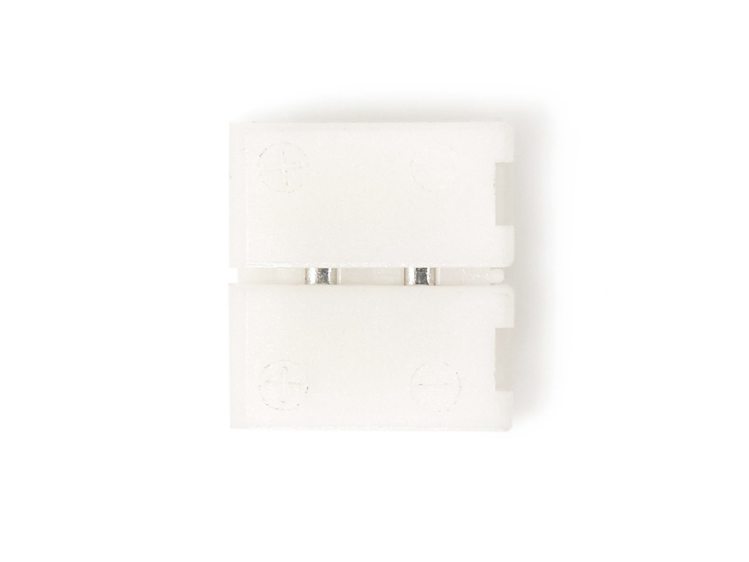 Złączka dwustronna przeznaczona do jednokolorowych taśm LED SMD5050 o szerokości 10 mm. Złączka umożliwia szybkie podłączenie taśmy LED z drugą taśmą, bez potrzeby lutowania