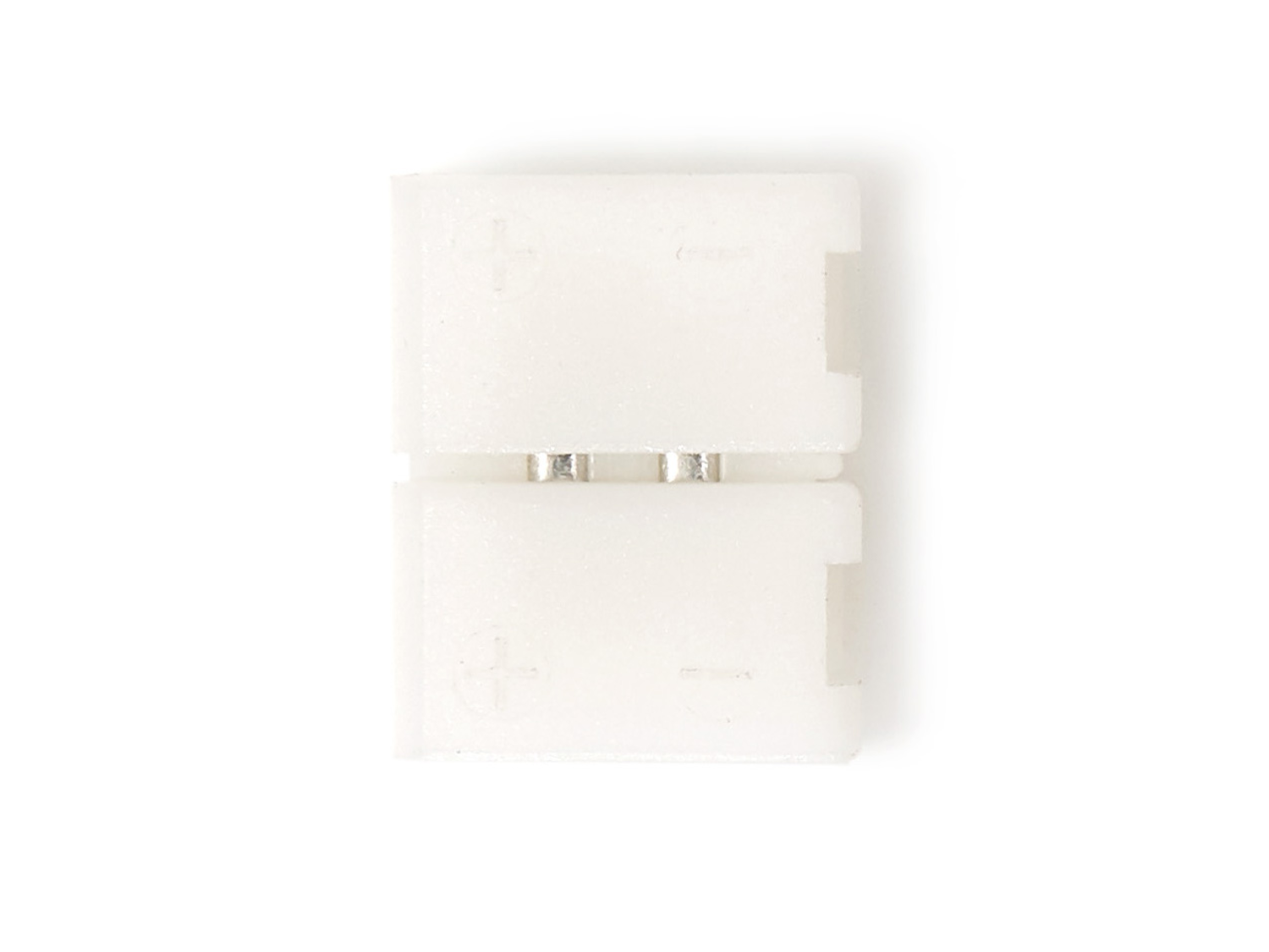 Złączka klips dwustronna przeznaczona do jednokolorowych taśm LED SMD2835/3528 o szerokości 8 mm. Złączka typu klips z obu stron wyposażona w klipsy do szybkiego podłączenia taśm LED. Szybkozłączka zatrzaskowa do taśm LED pozwala na szybkie łączenie taśmy LED z drugim paskiem o szerokości 8 mm bez potrzeby lutowania. Wystarczy jedynie odpowiednio umieścić taśmę w klipsie złączki oraz zamknąć zatrzask. Złączki bardzo łatwo montuje się, oraz bez większego trudu można je zdjąć, przez co są to akcesoria wielokrotnego użytku. Złączkę można wykorzystać do zwykłej taśmy LED, a także wodoodpornej, jednak w tym przypadku należy wcześniej usunąć jej silikonową osłonę w miejscu łączenia.