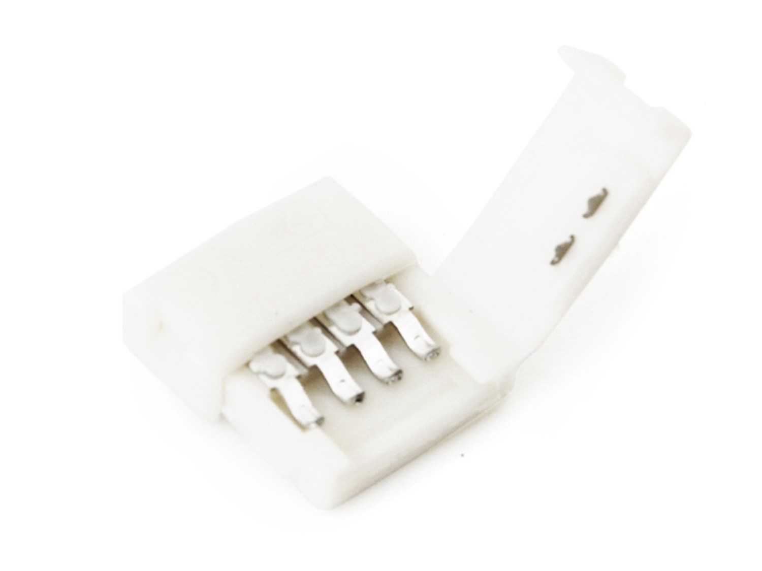 Złączka dwustronna przeznaczona do wielokolorowych taśm LED RGB o szerokości 10 mm. Złączka umożliwia szybkie podłączenie taśmy LED z drugą taśmą, bez potrzeby lutowania