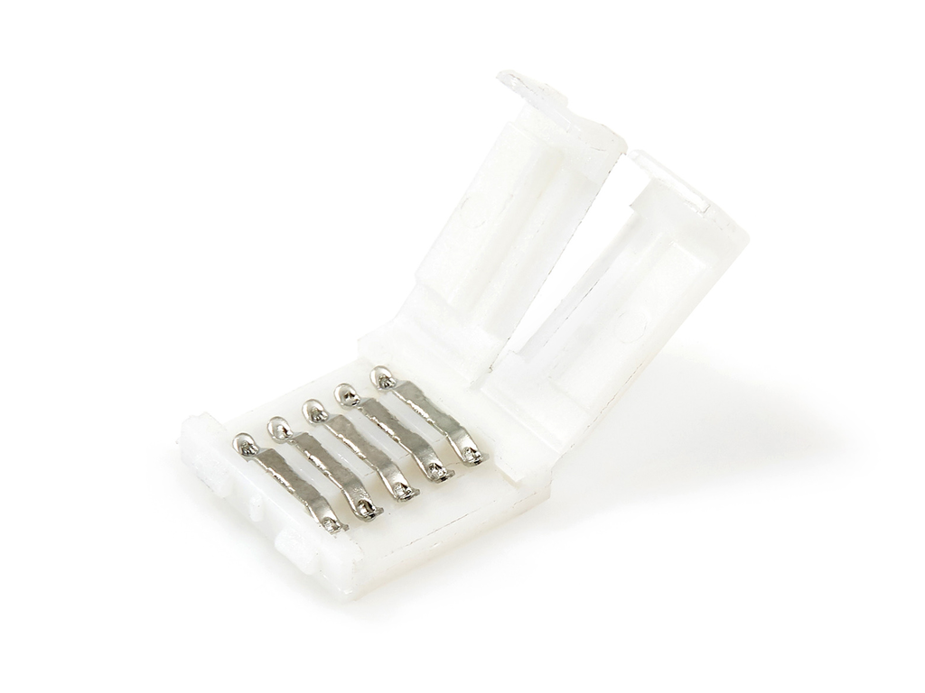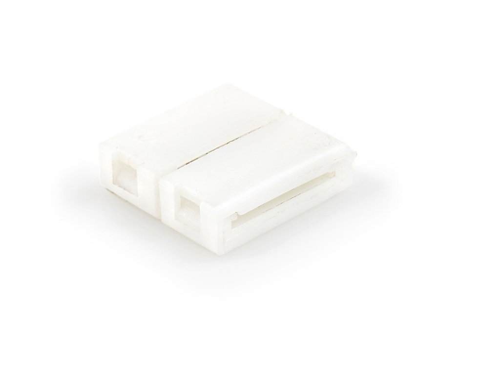 Złączka klips dwustronna przeznaczona do wielokolorowych taśm LED RGBW o szerokości 12 mm. Złączka typu klips z obu stron wyposażona w klipsy do szybkiego podłączenia taśm LED. Szybkozłączka zatrzaskowa do taśm LED pozwala na szybkie łączenie taśmy LED z drugim paskiem o szerokości 12 mm bez potrzeby lutowania. Wystarczy jedynie odpowiednio umieścić taśmę w klipsie złączki oraz zamknąć zatrzask. Złączki bardzo łatwo montuje się, oraz bez większego trudu można je zdjąć, przez co są to akcesoria wielokrotnego użytku. Złączkę można wykorzystać do zwykłej taśmy LED, a także wodoodpornej, jednak w tym przypadku należy wcześniej usunąć jej silikonową osłonę w miejscu łączenia.