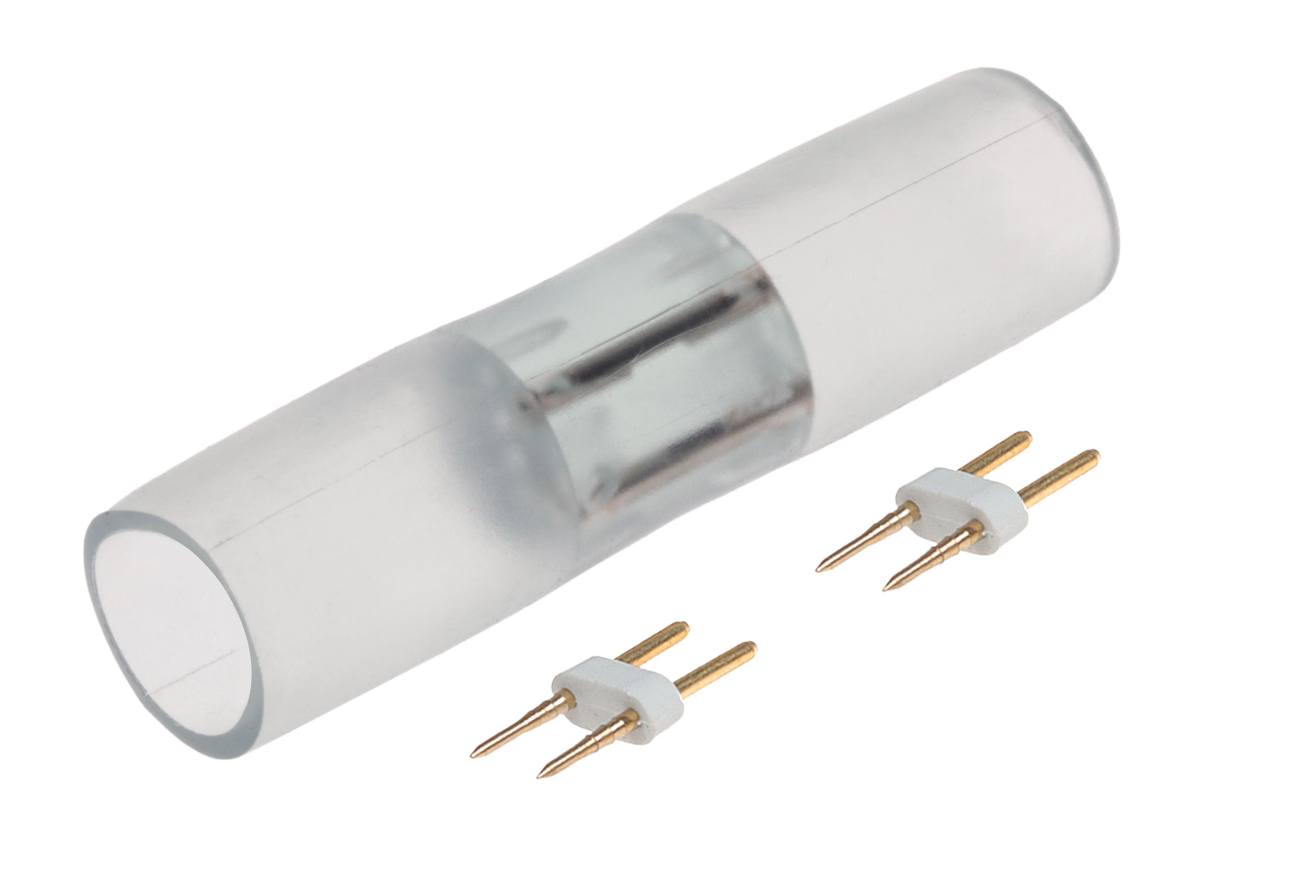 Złączka prosta do neonów LED okrągłych fi16mm z konektorami w zestawie. Złączka przeznaczona do połączenia dwóch neonów LED.